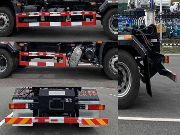 主要专用装置:垃圾箱提升机构.车辆用途:垃圾运输.侧防护装置材料:Q345B(支架)/ ST12(横杆),连接方式:螺栓连接;后防护装置材料:Q345B,断面尺寸(mm):60?20,连接方式:螺栓连接,离地高度480mm.该车安装具有卫星定位功能的行驶记录仪;随底盘装D4.5NS6B190,D6.7NS6B230,DDi50E190-60,B6.2NS6B210,B6.2NS6B230 发动机,对应的油耗值(L/100km)为24.4,23.7,23.9,23.8,23.8;随底盘装有ABS,ABS型号/生产厂家:3631010-C2000/东科克诺尔商用车制动系统(十堰)有限公司,ABS 8/东科克诺尔商用车制动系统(十堰)有限公司,4460046450/采埃孚商用车系统(青岛)有限公司.仅选用底盘4500mm轴距.随底盘选装:选装前雾灯;选装驾驶室顶部装饰灯;选装驾驶室前面罩;选装前保险杠及前部灯具,选装后视镜;选装后部灯具;驾驶室前脸扰流罩为选装件;选装后视镜;驾驶室卧铺侧窗选装装饰板;选装油箱安装位置,选装踏步结构。 |