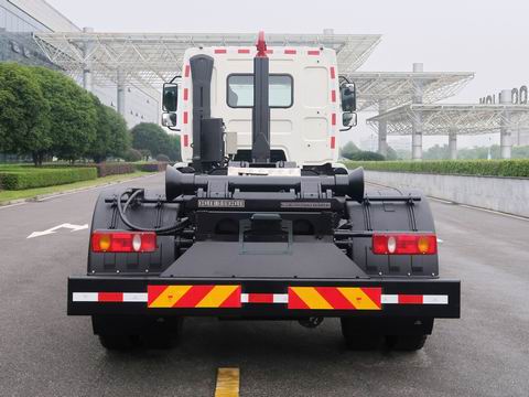 该车选用底盘4500mm轴距;该车通过拉臂装置及液压系统,实现对垃圾的装载及卸料的作业功能;该车仅运输封闭式专用货厢;标配拉臂装置时,整备质量7880kg,额定载质量9925kg;选配拉臂装置1时,整备质量7580kg,额定载质量10225kg;整车高度为2985,3075或3015mm;选配拉臂装置2时,整备质量7880kg,额定载质量9925kg;整车高度为2985,3075或3015mm;侧防护装置为铝合金,连接方式为螺栓连接,可选装左侧防护的结构外观;后防护装置材料为Q345A,与车辆连接方式为螺栓连接;后部防护装置的断面尺寸为240?5mm,离地高度为480mm.随底盘装YCS06245-60,D6.7NS6B230发动机,对应的油耗值(L/100km)为26.13,26.25.随底盘装有ABS,ABS型号/企业:ABS-E 4S/4M/威伯科汽车控制系统(中国)有限公司.该车安装具有卫星定位功能的行驶记录仪.可选装尾部快换接头布置位置.选装尾部拉臂装饰板.还可选装底盘驾驶室顶部附件、后部附件、后处理器外观及右侧中部附件布置位置外观、后组合灯支架外观、右侧中部小箱体外观、沃勒拉臂外观;该系列选装对整车参数的变化可忽略不计. |
