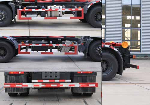 ABS型号:3631010-C2000,ABS 8,4460046450;ABS生产企业:东科克诺尔商用车制动系统(十堰)有限公司,威伯科汽车控制系统(中国)有限公司,J ABS/焦作博瑞克控制技术有限公司;选装描述:仅选用轴距(mm):4500,4700,随底盘选装驾驶室,随底盘选装布局及排气处理样式,该车型可选装ETC车载装置.;发动机/油耗值(L/100km)对应关系为:该车选装D6.7NS6B230、D4.5NS6B190、DDi50E190-60、B6.2NS6B210、B6.2NS6B230型发动机,对应的油耗值分别(L/100km)为:23.7,24.4,23.9,23.8,23.8.;侧后防护情况:侧、后装置采用材料为Q235,均为焊接连接,截面尺寸为120?0(mm),离地高为490mm;自卸方式为勾臂式;专用功能及装置:该车用于垃圾的收集清运,主要专用装置为勾臂. |