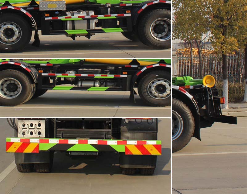 | 该车主要用于垃圾转运,专用装置为勾臂;整车长(mm)/轴距(mm)/后悬(mm)对应关系为:8300/1900+3500/1490,8170/1900+3500/1360,7520/1900+2850/1360,7070/1750+2550/1360;侧、后防护均采用Q235材质,连接方式为:螺栓连接;后防护截面尺寸(高卓?(mm)为150?0,离地高度470mm;ABS型号及生产厂家为:3631010-C2000/东科克诺尔商用车制动系统(十堰)有限公司;发动机/油耗值(L/100km)对应关系为:YCS06220-60(31.3);YCS06245-60(31.3);YCS06270-60(31.3);安装具有卫星定位功能的行驶记录仪;选装直接供电式ETC车载装置;选装多路阀罩;选装车身不同外观;选装不同装置样式. |