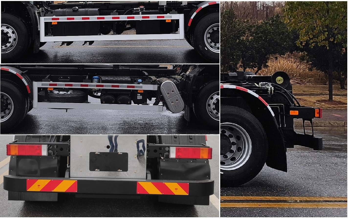 | 1、随底盘选装驾驶室前面罩;驾驶室前角扰流板为选装件;驾驶室侧窗选装树脂装饰板;选装驾驶室前面罩、前保险杠及前部灯具和后视镜(对应前悬1500mm,长度8485mm,高度3085mm);驾驶室顶部中间三个装饰灯为选装件;前雾灯为选装件;选装后部灯具;仅选用4350+1350mm轴距.2、安装具有卫星定位功能的行驶记录仪.3、ABS型号/生产厂家:3631010-C2000/东科克诺尔商用车制动系统(十堰)有限公司,ABS 8/东科克诺尔商用车制动系统(十堰)有限公司,4460046450/威伯科汽车控制系统(中国)有限公司.4、车辆侧面防护装置的材料材质为铝合金,后下部防护装置的材料材质为Q235钢,连接方式均为螺栓连接,后下部防护装置的断面尺寸(mm)为80?60,最大离地高度为470mm.5、车辆专用功能用于城乡垃圾的收集、中转和运输,专用装置为装卸功能的拉臂钩.6、发动机型号(变速箱)/油耗值(L/100km):D6.7NS6B290(DC7J120TD)/31.3,DDi75E350-60(9JS119TA)31.7,D6.7NS6B290(9JS119TA)/32,DDi75E350-60(DC7J120TD)/31.7;7、选装ETC车载装置.8、随底盘选装驾驶室不同结构的车门裙板、与车身颜色相同的前保险杠、驾驶室卧铺侧窗装饰板. |