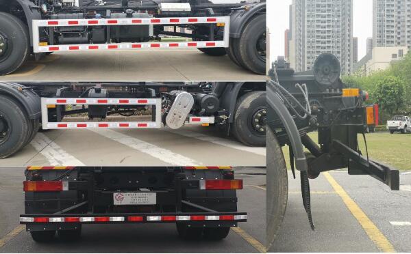1.该车仅选装4500mm轴距的底盘;2.选装高度不同的驾驶室;选装驾驶室顶部装饰灯;选装前雾灯;选装驾驶室前面罩;选装前保险杠及前部灯具,选装后视镜;选装后部灯具;选装驾驶室前脸扰流罩;3.选装上车踏板型式;4.拉臂式自装卸装置有A选配和B选配:选配A时的整备质量是7650Kg额定载质量是10155Kg,选配B时的整备质量是7480Kg额定载质量是10325Kg;5.侧护栏材质铝合金,连接方式为螺栓连接;后防护栏材质Q235,横截面形状为矩形,截面高度120mm,离地高度500mm,连接方式螺栓连接;6.该车安装具有卫星定位功能的行驶记录仪;7.装有ABS,ABS型号/生产厂家:3631010-C2000/东科克诺尔商用车制动系统(十堰)有限公司,ABS 8/东科克诺尔商用车制动系统(十堰)有限公司, 4460046450/采埃孚商用车系统(青岛)有限公司;8.该车型可选装ETC车载装置. |