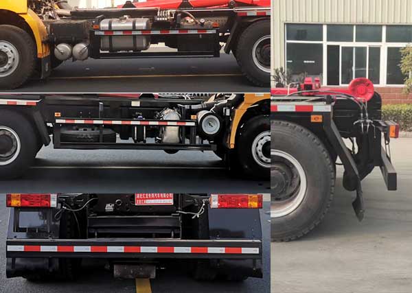 | 该车主要用于垃圾箱运输,主要专用装置为勾臂和油缸;侧面防护材质Q235,螺栓连接;后防护材质Q235,螺栓连接,断面尺寸(宽赘?:80?60(mm),下边缘离地高480mm;ABS型号: ZQFB-V, ABS生产企业: 西安正昌电子股份有限公司,发动机型号/油耗值(L/100km)对应关系YCK08300-60/32.2,YCK08350-60/31.84,随底盘选装驾驶,选装不同大臂结构;该车型可选装直接供电式ETC车载装置,安装带有卫星定位功能的行驶记录仪;仅选用4375+1400(mm)轴距的底盘改装. |