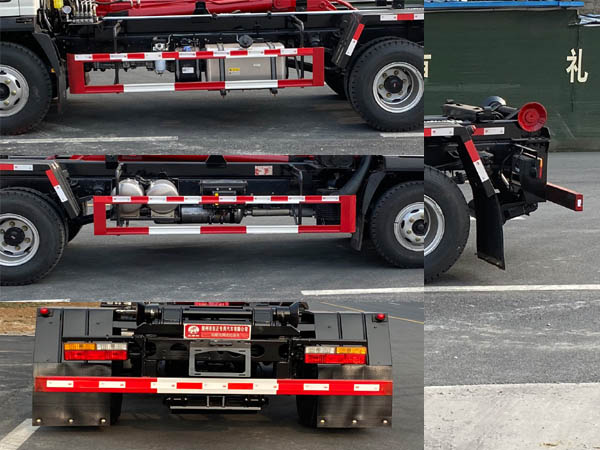 选装燃油箱,电瓶,尿素罐,储气筒等左右安装位置;选装锁紧方式;选装大臂结构;整车长度/轴距的对应关系为:5740/3300,5990/3550.侧后防护采用Q235材质焊接连接,后部防护断面尺寸为120?0mm,后部防护离地高度(mm):490. ABS生产厂家:威伯科汽车控制系统(中国)有限公司,型号:ABS-E4S/4M;浙江万安科技股份有限公司,型号:VIE ABS-II;广州瑞立科密汽车电子股份有限公司,型号:CM4XL-4S/4M.安装具有卫星定位功能的行驶记录仪. 该车型可选装直接供电式ETC车载装置;发动机对应油耗值(L/100km)分别为:D30TCIF1/21.2,D30TCIF2/21.2,D40TCIF1/21.3,D40TCIF2/21.3,D45TCIF1/20.9,D47TCIF1/21.1,YCS04200-68/20.9,D43TCIF1/20.6,YCY30165-60/20.9; 专用装置名称:拉臂机构,主要用于城镇环卫垃圾的收集与转运. |