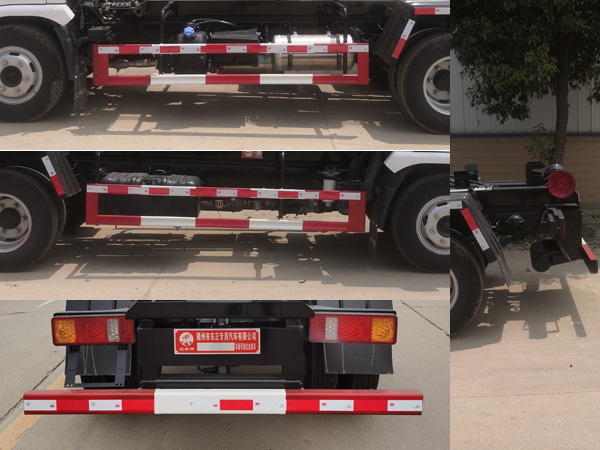 选装大臂结构,后部液压支撑,固定锁紧,液压锁紧,横向锁紧.专用装置为勾臂,用于垃圾的收集及转运.侧防护采用Q235材质螺栓连接,后防护采用Q235材质焊接连接,后防护截面尺寸(mm):100?0,下边缘离地高度450mm;ABS 型号CM4XL-4S/4M,生产企业:广州瑞立科密汽车电子股份有限公司;发动机/油耗值(L/100km)对应为:D20TCIF1/11.28,WP2.3NQ130E61/10.56;随底盘选装驾驶室,可选装ETC车载装置.整备质量包含备胎,灭火器,随车工具等. |