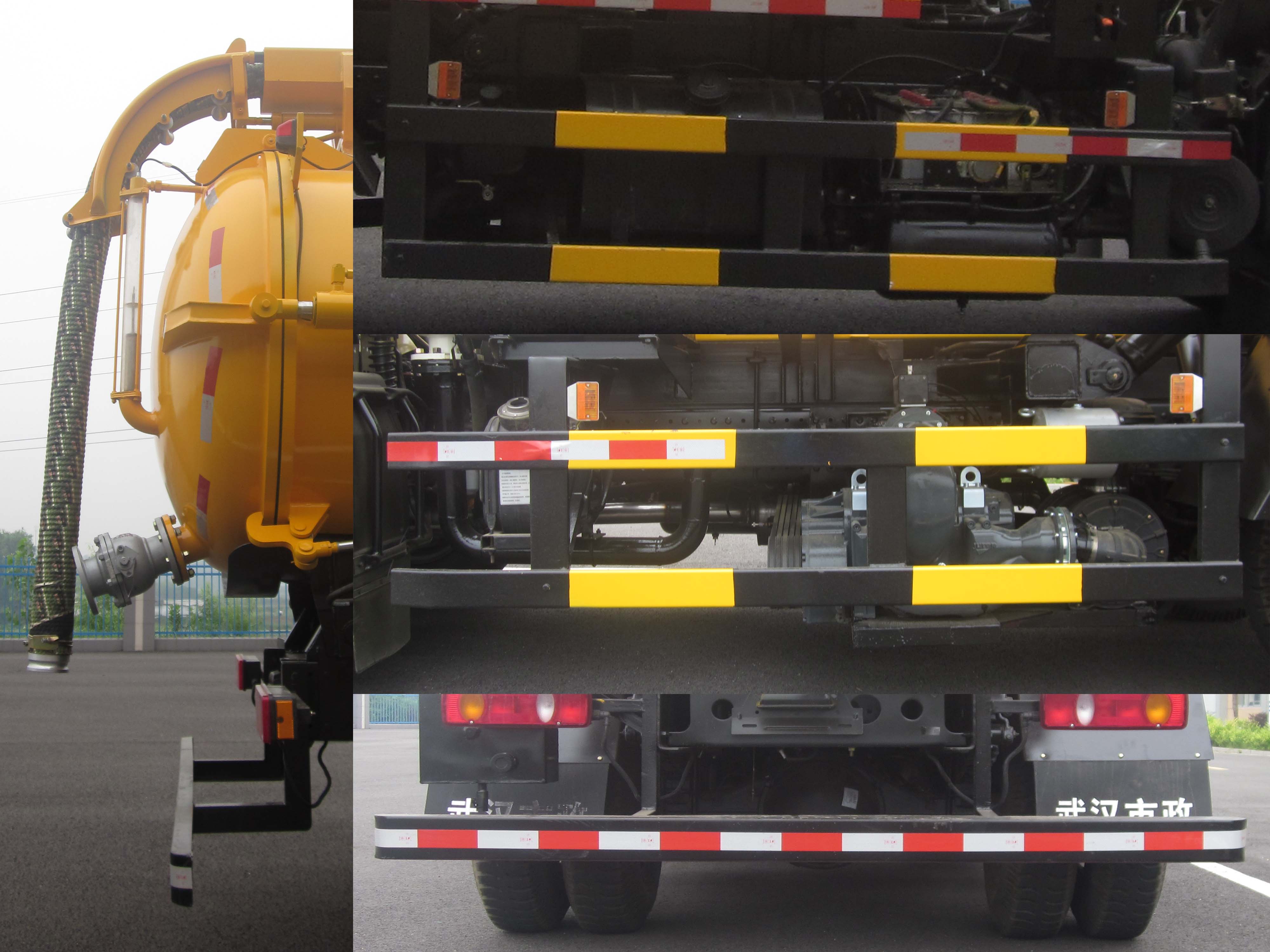 罐体有效容积为:8.67立方米,罐体外形尺寸(长/直径:单位毫米)5150/1600。介质为液态污物,密度为:850千克/立方米,悬臂为选装件,不加装时整车高度为:3110毫米,悬臂伸出方向可选装朝前或朝后。轴距仅选用4500mm,4200mm, 轴距/前悬/后悬的对应关系为:4500/1430/2020:4200/1430/2320。侧防护与后防护所用材料材质均为Q235A,侧防护和后防护与车辆螺栓连接固定,后防护断面尺寸为:120毫米?0毫米;离地高度为480毫米。选装ABS,ABS型号:3631010-C2000,4460046440;生产厂家:东科克诺尔商用车制动系统(十堰)有限公司,威伯科汽车控制系统(中国)有限公司。随底盘选装驾驶室。 |