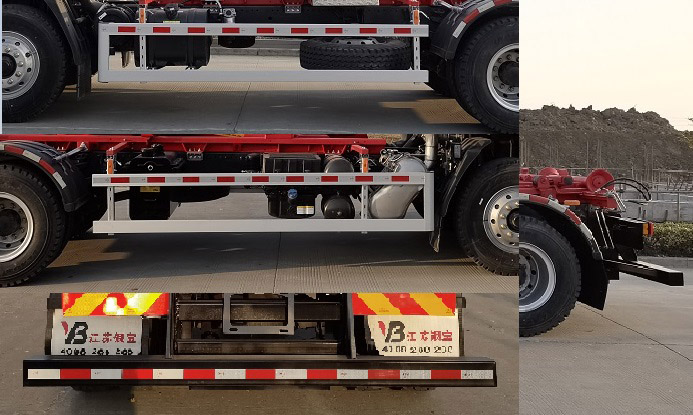 1.ABS型号/厂家:ABS-E4S/4M/采埃孚商用车系统(青岛)有限公司,ABS 8/东科克诺尔商用车制动系统(十堰)有限公司,CM4XL-4S/4M/广州瑞立科密汽车电子股份有限公司;2.侧面防护装置的横杆材料为铝合金,螺栓连接,离地高度为450mm;后下部防护装置的横梁材料为Q235A,螺栓连接,断面尺寸为120mm?20mm,离地高度为460mm;3.选装描述:选装铝合金挡泥罩,选装驾驶室外观及其各零部件的外观,选装ETC车载装置;4.可选用的发动机型号和油耗值分别为:D6.7NS6B230/26.25(L/100km),YCS04200-68/26.60(L/100km),YCS06245-60/26.13(L/100km),YCS06200-60/26.13(L/100km),YCS06245-60A/26.13(L/100km);5.仅采用轴距4500mm;6.安装具有卫星定位功能的行驶记录仪;7.专用功能及装置:该车通过专用装置拉臂系统来实现垃圾的转运及自卸. |