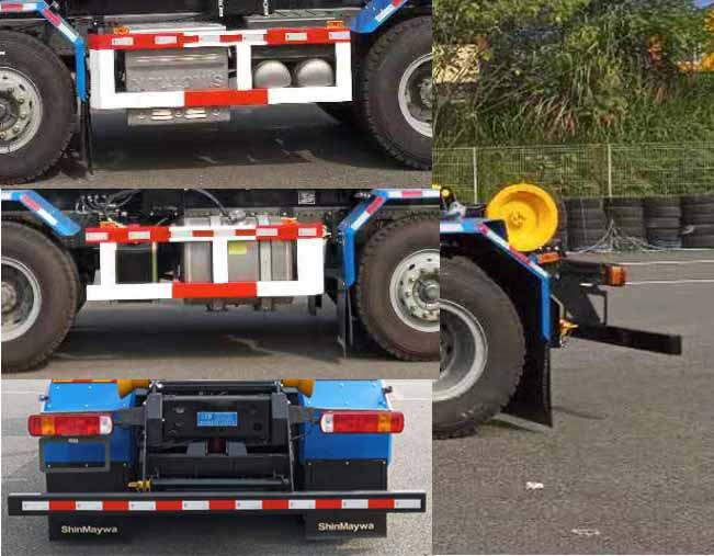 | 1、配发动机机MC07.31-60/MC07.34-60/MC07H.33-60/MC07H.35-60/WP8.350E61/WP9H350E62的净功率(kW)为225/248/237/254/252/252,油耗申报值(L/100Km)为36.9。。2、侧面及后下部防护装置,所用材料材质:Q235-A,连接方式:螺栓连接,后部防护装置的主要尺寸参数,断面尺寸:120?0?mm,离地高度:480mm。驾驶室两端喷涂总质量31000kg字样。 3、可不选装遮阳罩,可不选装玻璃后风窗。选装限速装置,最高车速(km/h)为80或89。ABS系统控制器生产企业/型号为威伯科(上海)管理有限公司/4460046300;选装EBS,EBS系统控制器生产企业/型号为威伯科(上海)管理有限公司/EBS3。安装带卫星定位功能的行驶记录仪。4、该车主要通过拉臂装置及其液压系统,对垃圾箱箱体进行拉箱上车、举升卸料、卸箱下地等动作,并能对垃圾箱箱体进行转送运输的功能. |