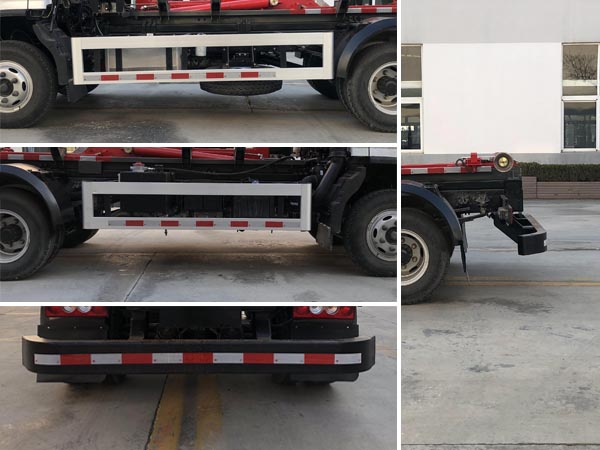 | 车辆主要用于城乡垃圾的收集、中转和运输,专用装置为装卸功能的拉臂钩.仅选用3360mm轴距.随底盘选装限速装置,最高车速80km/h.选装前围及灯具.选装后封板.选装新式车辆外部标识牌.选装ETC车载装置.ABS系统型号/生产企业:ABS-E/威伯科汽车控制系统(中国)有限公司,ABS-VI稥/广州瑞立科密汽车电子股份有限公司,ABS8.8 ECU 24V/东科克诺尔商用车制动系统(十堰)有限公司.发动机/燃料消耗量(L/100km)对应关系:F3.8NS6B156/16.20,F2.8NS6B156/15.39,CY4SK261/16.09,D30TCIF1/16.19,D25TCIF1/14.01.车辆侧面防护装置的材料材质为铝合金,连接方式为螺栓连接.后下部防护装置的材料材质为Q235钢,连接方式为焊接,断面尺寸(mm)为80?60,最大离地高度为410mm. |