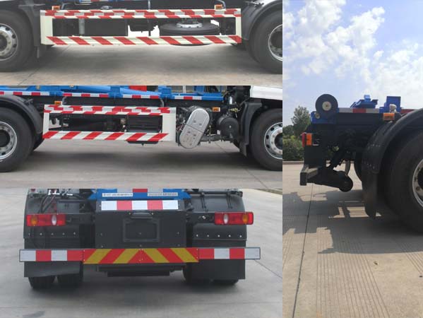该车仅采用4500mm轴距;该车主要用于垃圾转运,专用装置为勾臂,侧面防护装置:材质Q235,连接方式:焊接与螺栓连接;后部防护装置:材质Q235,连接方式:焊接与螺栓连接;断面尺寸为120?0mm,离地高度为490mm;随底盘安装ABS型号/生产厂家:J ABS/焦作博瑞克控制技术有限公司,3631010-C2000/东科克诺尔商用车制动系统(十堰)有限公司,ABS 8/东科克诺尔商用车制动系统(十堰)有限公司, 4460046450/威伯科汽车控制系统(中国)有限公司.装有具有卫星定位功能的行驶记录仪;随底盘选装驾驶室外观;随底盘选装D6.7NS6B230,B6.2NS6B210,B6.2NS6B230,DDi50E190-60,D4.5NS6B190发动机,对应的油耗值(L/100km)分别为:23.7,23.8,23.8,23.9,24.4。该车型可选装ETC车载装置。 |