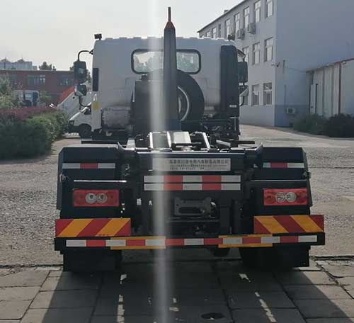 | 该车通过拉臂装置及液压系统,实现对垃圾的装载及卸料的作业功能;该车选用3360mm轴距对应长度为5690mm;选用3800mm轴距对应长度为6130mm。选装拉臂架1时,对应整备质量4950kg。侧防护材料为Q235A,与车辆连接方式为螺栓连接;后防护材料为Q235A,与车辆连接方式为焊接,截面尺寸为100x50mm,最大离地高度420mm.仅选用发动机型号F3.8NS6B156的净功率为112kW,对应油耗值20.81L/100km。ABS系统控制器型号/生产企业:ABS-E/威伯科汽车控制系统(中国)有限公司,ABS-VI稥/广州瑞立科密汽车电子股份有限公司.该车安装具有卫星定位功能的行驶记录仪。选装拉臂架1。 |