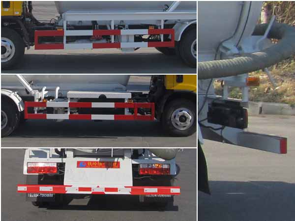 | 罐体外形尺寸:罐体直段长(去掉封头)3.68米,直径1.38米.罐体有效容积为4.68立方米.运输介质:带悬浮物的污水,密度:0.75吨/立方米.侧后防护材质均为Q235,均为螺栓连接.后防护横向构件截面尺寸为:100x50毫米,下平面距地尺寸465毫米.ABS型号/厂家:VIE ABS-II /上海万捷汽车控制系统有限公司.选装后部液压开启的小卸料口和罐顶吸污摆臂装置.整备质量在3%范围内. |