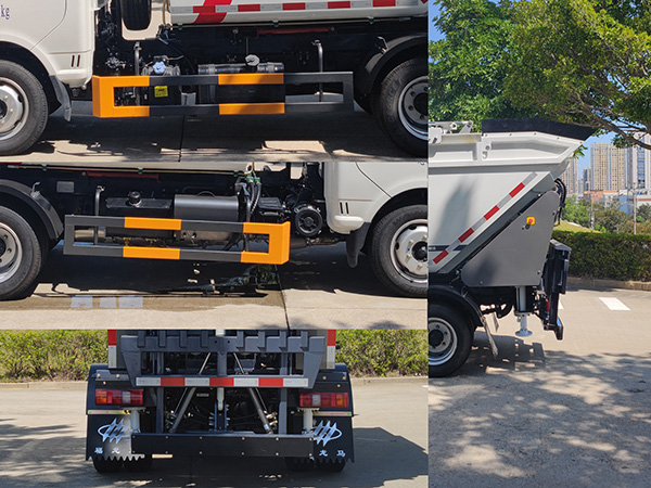 1、侧防护装置的材料材质:Q235B,连接方式:螺栓连接;后部防护由专用装置代替,离地高270mm;2、可选装另一种提升机构、可选装对接装置、可选装箱体侧投料门、可选装另一种急停按钮;3、该车主要通过专用装置将装载有生活垃圾的垃圾桶自行将垃圾装入、转运和倾卸的功能,车辆右后工作灯仅停车作业时使用;4、ABS型号/厂家为:YF8/武汉元丰汽车电控系统股份有限公司;5、发动机Q23-95E60的油耗值:11.01L/100km;选装直接供电式ETC车载装置,随底盘选装前雾灯;6、车辆整备质量包括配件配备:灭火器、随车工具、备胎;7、货箱重量为545kg,前封板、底板、左右侧板、顶板、后封板材质均为Q345B,厚度3mm,其中前封板质量45kg,底板含梁质量93kg,左右侧板单体质量70kg,顶板含框质量122kg,后封板含框质量104kg,其他加强件及附属件质量合计41 kg,以上面板材质可选装SUS304; |