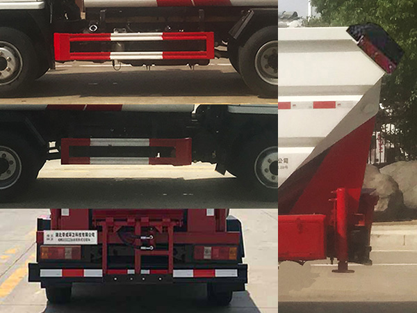 1.专用装置:挂桶机构和箱体,主要用于垃圾的收集和转运;整备质量包含:三角垫木,随车工具;2.随底盘选装排半驾驶室,选装后部结构,选装挂桶机构,选装箱体结构;3.侧,后防护材料均为Q235,连接方式为焊接加螺栓连接,后部防护断面尺寸(mm):120?0,离地高度350mm;;选装后部挂桶机构时后防护由专用装置替代,下边缘离地高:350mm;4.发动机型号/油耗(L/100km)对应关系:D20TCIF1/11.4;5.ABS型号:CM4YK,ABS生产企业:广州瑞立科密汽车电子股份有限公司.该车型可选装ETC车载装置. |