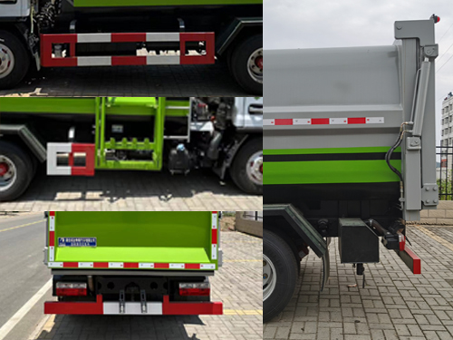 | 1.ABS型号/厂家:ABS/ASR-12V-4S/4M/襄阳东风隆诚机械有限责任公司;2.随底盘选装驾驶室,选装直接供电方式ETC车载装置,选装后部锁紧结构,仅用3308mm轴距;3.侧、后防护材料为Q235,侧防护螺栓连接,后防护焊接连接,后防护截面尺寸120?0mm,下边缘离地高410mm;4.发动机/油耗值(L/100km)对应关系为:D20TCIF1/16.2,YCY24140-60/16.2,CA4DB1-11E6/16.2,ZD30D16-6N/16.2,CY4BK461/16.2,CY4BK161/16.2,H20-120E60/16.2,Q23-115E60/16.2,Q28-130E60/16.2;5.该车主要用于垃圾收集转运,专用装置为垃圾箱、提升机装置. |