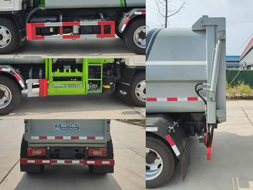 1.ABS系统控制方式为4S/4M,ABS型号为CM4XL-4S/4M,生产厂家为广州瑞立科密汽车电子股份有限公司;2.随底盘选装驾驶室,选装新前格栅及新logo,选装新前围,选装直接供电方式ETC车载装置,选装限速装置,最高车速80km/h,仅用2850mm轴距;3.侧、后防护材料为Q235,侧防护螺栓连接,后防护焊接连接,截面尺寸100?0mm,下边缘离地高400mm;4.发动机/油耗值(L/100km)对应关系为:Q23-115E60/11.12,Q23-115C60/11.4;4.该车主要用于垃圾收集转运,专用装置为垃圾箱、提升机装置;5.整备质量对应的配件包括灭火器、随车工具;6.选装箱体侧面及后部样式,选装提升机装置样式. |