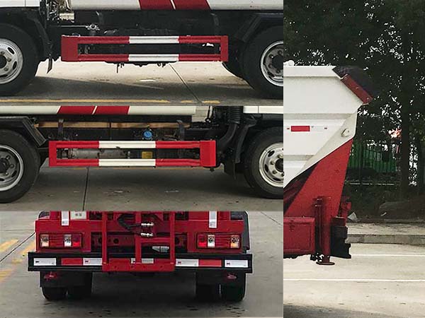 1.专用装置:挂桶机构和箱体,主要用于垃圾的收集和转运,该车自卸方式为后卸;整备质量包含:三角垫木,随车工具;2.选装后部结构,挂桶机构,选装箱体结构;3.侧,后防护材料均为Q235,连接方式为焊接加螺栓连接,后部防护断面尺寸(mm):120?0,离地高度350mm;选装后部挂桶机构时后防护由专用装置替代,下边缘离地高:350mm;4.发动机型号/油耗(L/100km)对应关系:Q23-95E60/11.0;5.ABS生产厂家/型号:1.浙江万安科技股份有限公司/VIE ABS-II.2.广州瑞立科密汽车电子股份有限公司/CM4YL.该车型可选装ETC车载装置. |