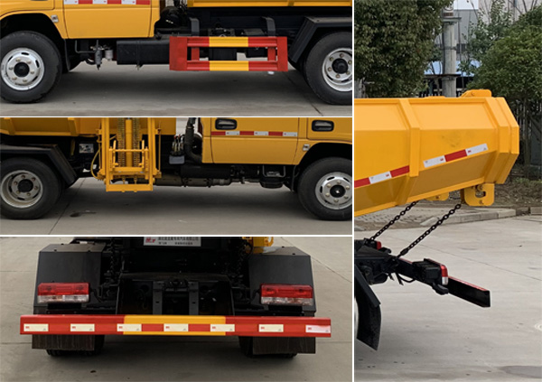 该车装备有专用装置,用于以本车装置和动力配合集装垃圾的定型容器自行将垃圾装入,转运和倾泻的专用汽车;随底盘选装驾驶室;侧,后防采用Q235材质螺栓连接在大梁上,后防护断面尺寸(mm):125?0,离地高度(mm):480;ABS型号/厂家:ABS/ASR-12V-4S/4M/襄阳东风隆诚机械有限责任公司,发动机型号与油耗值(L/100km)的对应关系为:YCY24140-60/16.3,Q28-130E60/14.9,Q23-115E60/14.5,H20-120E60/11.4;选装直接供电的ETC车载装置.选装不同外观. |