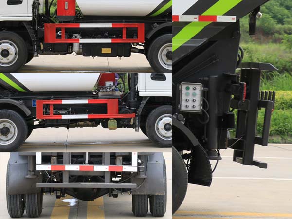 该车专用装置主要为垃圾箱和提升机构,用于垃圾的收集和清运;侧防护材料Q235,螺栓连接;后防护由专用装置代替,下边缘离地高400mm; ABS型号:CM4YK,ABS生产企业:广州瑞立科密汽车电子股份有限公司;发动机D20TCIF1对应油耗值为11.4L/100km. 该车型可选装ETC车载装置。随底盘选择滤清器样式,仅采用2600轴距和2800改装,外形尺寸/轴距/前悬/后悬对应关系;5110/2800/1100/1210,4900/2800/1100/1000,4700/2600/1100/1000,选装结构外化外观.该车型整备质量不包含备胎、灭火器、随车工具。货箱重量为1420kg,底板材质为Q235钢,厚度为2.5mm、2.75mm、3.0mm;侧板材质为Q235钢,厚度为2.5mm、2.75mm、3.0mm。 |