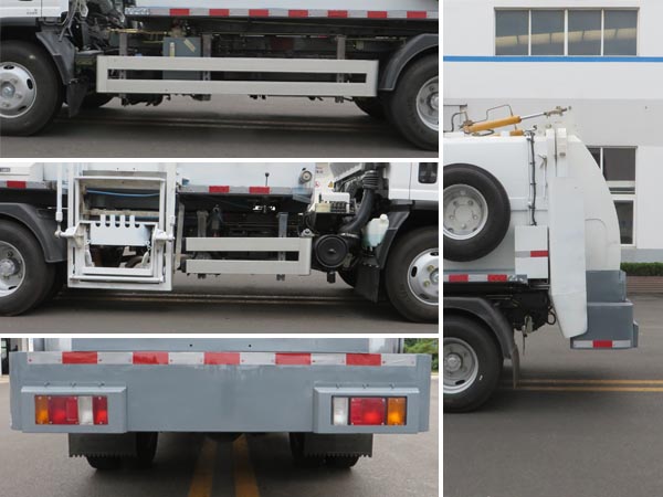 | 车辆主要专用装置为挂桶提升机构、垃圾厢,实现垃圾的自装卸功能和转运功能.货厢自卸方式为后卸.随底盘选装制动系统:装液压制动系统时,ABS及其控制器型号/生产企业对应关系为:APG3550500A/浙江亚太机电股份有限公司,CM4YL/广州瑞立科密汽车电子股份有限公司;装气压制动系统时,ABS及其控制器型号/生产企业对应关系为:CM4XL-4S/4M/广州瑞立科密汽车电子股份有限公司.选装前部标牌.选装轮眉.选装ETC车载装置.选装不带洗车装置.4KH1CN6LB发动机对应的燃料消耗量为16.12L/100km.车辆侧面防护装置的材料材质为铝合金,连接方式为螺栓连接.后下部防护装置采用后门专用装置代替,最大离地高度为490mm. |