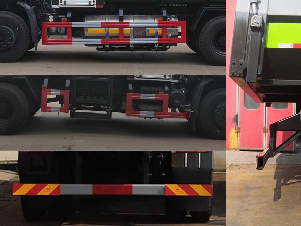 随底盘选装前格栅造型及灯具.选用4500mm轴距.侧后防护采用Q235材质焊接连接,后部防护断面尺寸为120?0mm,后部防护离地高度(mm):500.装备ABS,型号/生产厂家:3631010-C2000/东科克诺尔商用车制动系统(十堰)有限公司,ABS-E 4S/4M/生产厂为威伯科汽车控制系统(中国)有限公司.该车装有垃圾桶、垃圾箱,可自行将垃圾装入转运和倾卸. |
