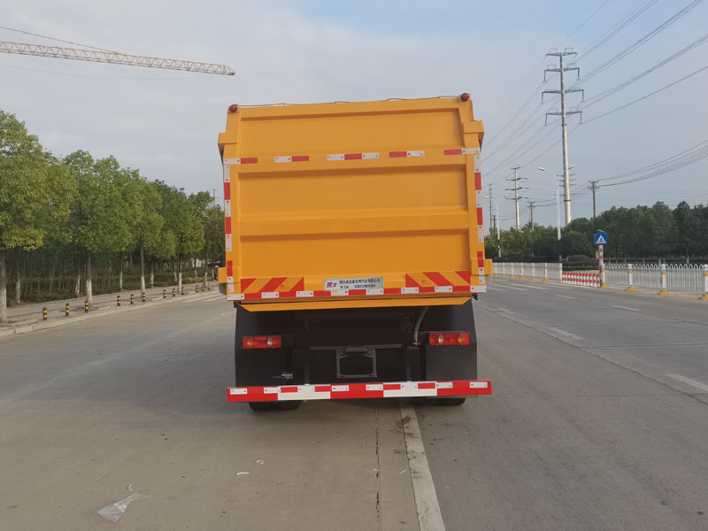 该车主要用于实现压缩垃圾站的压缩块状垃圾的对接装载和转运卸料功能;车厢顶部封闭,不可开启;该车卸料方式为后卸式,该车通过垃圾箱体,箱体中置顶举升机构整;车长(mm)/轴距(mm)/前悬(mm)/后悬(mm)对应关系为:8380/5000/1400/1980,8380/5000/1430/1950,8080/4700/1400/1980,8080/4700/1430/1950,7880/4500/1400/1980,7880/4500/1430/1950,7580/4200/1400/1980,7580/4200/1430/1950,7330/3950/1400/1980,7330/3950/1430/1950,7180/3800/1400/1980,7180/3800/1430/1950;侧防护采用Q235材质,连接方式均螺栓连接,后防护采用Q235材质,连接方式为焊接连接,后防护断面尺寸(mm):140?0,离地高度(mm):450;随底盘选装驾驶室;ABS型号/生产厂家:3631010-C2000/东科克诺尔商用车制动系统(十堰)有限公司,ABS 8/东科克诺尔商用车制动系统(十堰)有限公司, ABS-E 4S/4M/采埃孚商用车系统(青岛)有限公司,J ABS/焦作博瑞克控制技术有限公;发动机对应油耗值(L/100km)为:D4.5NS6B190/24.4,D6.7NS6B230/23.8,B6.2NS6B210/23.8,D4.0NS6B185/25.2,DDi50E220-60/25.1,B6.2NS6B230/23.8,DDi50E190-60/25.1,D6.7NS6B260/23.8;选装不同外观;安装具有卫星定位的行驶记录仪;选装直接供电式ETC车载装置;选装不同厢体外观;选装车身两侧不同外观;选装不同车身外观;随底盘选装车身两侧储气筒、油箱、电瓶、处理器不同位置外观. |