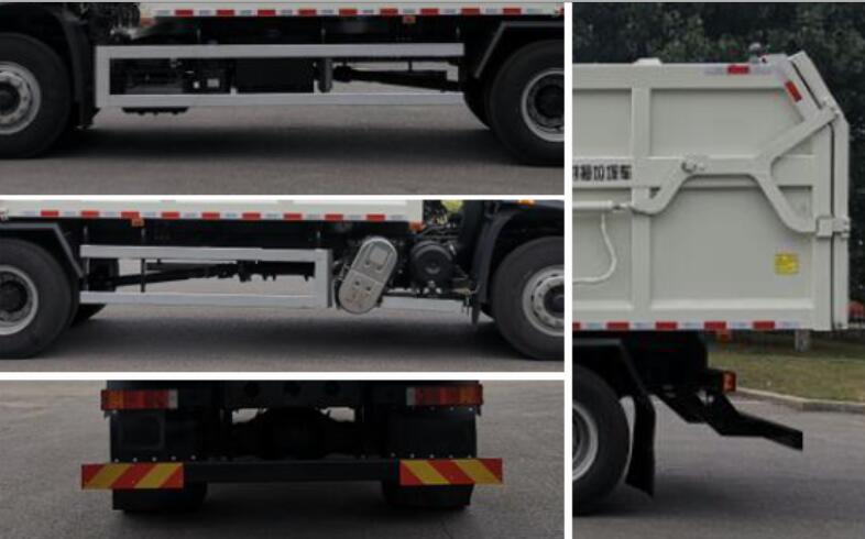 该车主要用于压缩垃圾站的压缩块状垃圾的装载和转运,厢体顶部封闭,不可开启;;主要装置为垃圾箱体;选用4500mm轴距,整车长度/前悬/后悬对应关系为7900/1400/2000(mm),7930/1430/2000(mm);选装驾驶室样式;侧面防护装置的材料为Q235,与车架连接方式为焊接;后防护装置材料为Q235,连接方式为螺栓连接,后部防护装置的断面尺寸为120mm?0mm,离地高度为480mm;该车可选用的发动机型号和对应的油耗值分别为:D4.5NS6B190/24.4(L/100km),D6.7NS6B230/23.7(L/100km),DDi50E190-60/23.9(L/100km),B6.2NS6B210/23.8(L/100km),B6.2NS6B230/23.8(L/100km),DDi50E220-60/25.1(L/100km);随底盘选装不同结构的车门裙板,随底盘选装驾驶室卧铺侧窗装饰板,随底盘选装前雾灯,选装与车身颜色相同的前保险杠,随底盘选装驾驶室顶部装饰灯,随底盘选装前下视镜,ABS型号/生产厂家:3631010-C2000/东科克诺尔商用车制动系统(十堰)有限公司,ABS 8/东科克诺尔商用车制动系统(十堰)有限公司,4460046450/威伯科汽车控制系统(中国)有限公司.装有带卫星定位功能的行驶记录仪.可选装ETC车载装置 |