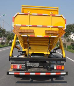 1.该车专用装置为:摆臂提 升机构装置;装备有污泥小推车摆臂机构及后倾卸式车厢,将装有污泥的小推车悬挂在摆臂机构上,倾倒入车厢内,完成清理转运工作;2.防护材料为Q235钢材,采用螺栓与车辆连接,后下部防护尺寸(长卓碜高):1800?0?20mm,离地高度450mm;3.ABS及其控制器型号/生产企业对应关系为::APG3550500A/浙江亚太机电股份有限公司,CM4YL/广州瑞立科密汽车电子股份有限公司;4.该车仅选用发动机型号为4KH1CN6LB,对应油耗值为16.12L/100km,最大净功率为87kW,排量2999ml;5.该车后部选装显示屏,选装无箭头灯;6.选装无箭头灯时整车长度为6550mm;选装箭头灯时整车长度为6605mm;7.随底盘扩展驾驶室 |