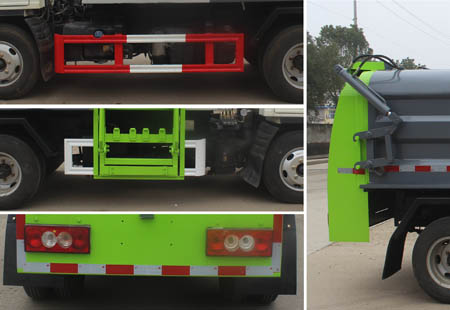 该车用于餐厨垃圾收集及转运,主要专用装置为箱体、侧装垃圾桶提升装置.整车长/后悬对应关系为(mm):5200/1220,5250/1270, 5300/1320.侧、后防护材料为Q235B,侧防护车架焊接连接.后防护由专用装置代替,后部专用装置离地高度:410mm.ABS系统控制方式为4S/4M,ABS型号为CM4XL-4S/4M,生产厂家为广州瑞立科密汽车电子股份有限公司.随底盘选装驾驶室.选装爬梯样式. |