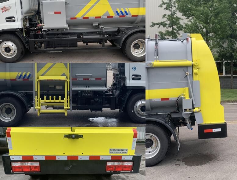 该车专用装置由垃圾箱、提升机构等组成,用于餐厨垃圾收集、转运及卸料作业;仅选用3308mm轴距;随底盘选装驾驶室;可选装a(基本型)和b(简便型)卸料装置.选装a时,整备质量为4600kg;选装b时,整备质量为4340kg;右侧防护由专用装置和侧护栏组成,左侧防护为侧护栏,侧防护装置材质为Q235B,连接方式为螺栓连接;后部专用装置作后防护用,离地高度470mm;ABS型号:ABS/ASR-12V-4S/4M,ABS系统生产企业:襄阳东风隆诚机械有限责任公司. |