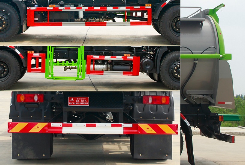 随底盘选装驾驶室;仅采用4500,4700轴距;ABS型号/生产厂家:3631010-C2000/东科克诺尔商用车制动系统(十堰)有限公司,ABS 8/东科克诺尔商用车制动系统(十堰)有限公司,4460046450/威伯科汽车控制系统(中国)有限公司,J ABS/焦作博瑞克控制技术有限公司;侧、后防护材料均为Q235B,侧防护螺栓连接,后防护焊接连接,断面尺寸(宽赘?50?50(mm),离地高450mm;该车用于餐厨垃圾的收集清运,主要专用装置为垃圾箱及提升机构。 |