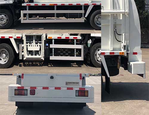 1.该车用于餐厨垃圾收集、清运,主要装置为密封箱体、提桶机构;选装不带导流挡板时,车辆高度为2640mm;选装后部箭头灯;2.侧面防护材质为铝合金,螺栓连接;后下防护由专用装置替代,离地高度470mm;3.ABS及控制器型号为:APG3550500H1,生产厂家为:浙江亚太机电股份有限公司;4.选装垃圾箱体,选装提桶机构,选装称重系统,选装后部摄像头,选装观察窗,选装后门锁紧机构,选装满箱报警装置,选装手动操作。 |