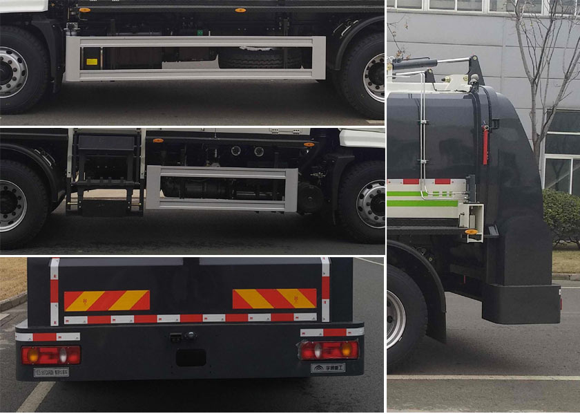 1.该车用于餐厨垃圾收集清运,主要专用装置为箱体、上料机构、推铲。2.侧防护装置材料为Q355,与车辆采用螺栓连接;后防护装置车身结构替代,离地高度480mm。3.ABS型号/生产厂家:ABS-E 4S/4M/威伯科汽车控制系统(中国)有限公司。4.清洗系统、螺旋卸料、倒车监控、操作手柄、污水箱及组件为选装件,可取消。5.随底盘选装后视镜下支座结构、驾驶室前面罩、脚踏结构、不同外观进气系统、不同外观后视镜、燃油箱、侧围结构。6.选装不同型式上料机构(A/B/C/D/E/F/G/H/I)、左侧爬梯(A/B)、不同位置后摄像头、不同位置观察孔、后门箭头灯、不同位置操作手柄、后门安全撑杆操作机构、污水箱加热系统、不同型式后围、360环视、链条式上料。7. 标配对应整备质量为8570kg;当选装螺旋卸料或污水箱加热系统其一时,对应整备质量为8800kg;当选装螺旋卸料和污水箱加热系统时,对应整备质量为8950kg。8.准乘人数(人)/整备质量(kg)/额定载质量(kg)对应关系:2/8570/9300,2/8800/9070,2/8950/8920,3/8570/9235,3/8800/9005,3/8950/8855。9.该车型仅选用轴距4500(mm);发动机净功率值:YCS04200-68净功率为143kw,YCS06245-60A净功率为176kw。10.随底盘选装有限速装置,限速89km/h。 |