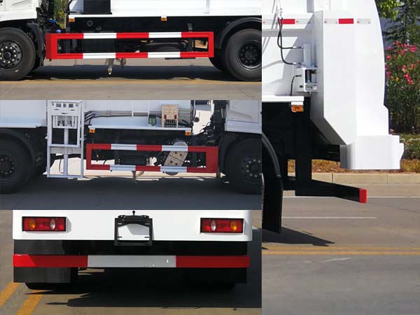 1、该车主要用于餐厨垃圾处理,主要专用装置为箱体、上料机构提升架、推铲、定点排放装置。整车外形长/轴距/前悬(mm): 7090/3800/1400,7120/3800/1430,7240/3950/1400,7270/3950/1430,7790/4500/1400,7820/4500/1430,7990/4700/1400,8020/4700/1430。仅采用轴距(mm):3800,3950,4500,4700。2、侧防护材料采用Q235,螺栓连接;后防护材料采用Q235,螺栓连接,截面高120mm,截面宽60mm,下边缘离地高450mm。3、随底盘选装选装不同的驾驶室。ABS型号/生产厂家:3631010-C2000/东科克诺尔商用车制动系统(十堰)有限公司,ABS 8/东科克诺尔商用车制动系统(十堰)有限公司, 4460046450/采埃孚商用车系统(青岛)有限公司。随底盘选装ABS型号/生产厂家:J ABS/焦作博瑞克控制技术有限公司;选装后处理装置布置形式; |