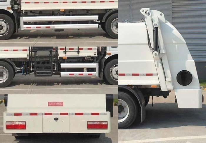 侧面防护装置材料:铝合金,连接方式:横竖杆之间螺栓连接,和车架之间螺栓连接。后下部防护装置为车辆构件一部分,材料为:Q235-A,焊接,离地高度430mm。ABS系统型号为ABS/ASR-24V-4S/4M,生产企业为襄阳东风隆诚机械有限责任公司。仅选装轴距为3800mm的底盘。专用装置为举升机构(举升垃圾桶,倾到餐厨垃圾)和垃圾箱(装放餐厨垃圾)。随底盘选装尿素罐、油箱、储气筒安装位置。随底盘选装前面罩,前保险杠,前组合灯具,前雾灯,选装链轮式举升机构。 |