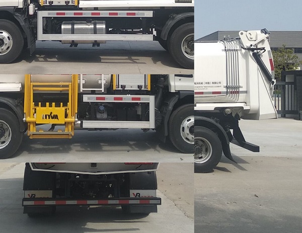 1.ABS系统控制器型号:CM4XL-4S/4M,ABS系统控制器生产厂家:广州瑞立科密汽车电子股份有限公司,选装ABS系统型号/厂家为VIE ABS-Ⅱ/浙江万安科技股份有限公司;2.侧面防护装置的横杆材料为铝合金,螺栓连接,离地高度为450mm;后下部防护装置的横杆材料为Q235A,螺栓连接,断面尺寸100?00mm,离地高度为350mm;3.该车采用的发动机型号及对应的油耗值分别为D30TCIF2/16.2(L/100km); 4.仅选用3365mm轴距;5.选装及描述:上装可选装清洗装置;选装无刮板装置;选装驾驶室外后视镜外观;选装尾部的外部标识牌;8.该车是通过垃圾箱、提桶机构、液压系统及电气控制系统等装置来实现餐厨垃圾的收集和卸料的专用垃圾车. |
