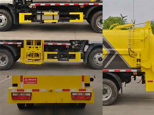 1.该车用于餐厨垃圾收集清运,主要专用装置为箱体、侧装载机构;2.仅采用3365mm轴距;3.侧防护采用材料/Q235B,螺栓连接;后防护由专用装置替代,下边缘离地高400mm;4.ABS系统型号/厂家为VIE ABS-Ⅱ/浙江万安科技股份有限公司;5.随底盘选装驾驶室样式,选装尾部挡水板结构及侧面爬梯,提升机构样式。 |