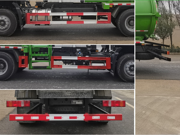 仅采用4700mm,4500mm轴距.ABS系统型号为446 004 6300,生产企业为威伯科汽车控制系统(中国)有限公司。选装EBS,EBS系统控制器生产企业:威伯科汽车控制系统(中国)有限公司,型号:EBS3.安装具有卫星定位功能的行驶记录仪。侧防护采用Q235,螺栓连接。后防护采用Q235,焊接连接。后防护截面高度尺寸120mm,截面宽度尺寸50mm,下边缘离地高度480mm。车辆长/轴距/前悬/后悬对应关系为:8400/4700/1550/2150,7900/4700/1550/1550,7650/4700/1550/1400,7650/4500/1550/1600,7450/4500/1550/1400。专用装置为罐体,提升机构,用于餐厨垃圾的收集与处理。选装ETC车载装置。选装驾驶室及外观样式。 |