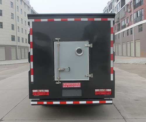 选装厢体样式。随底盘选装驾驶室。侧防护采用冷弯型钢/Q235-B,螺栓连接,后防护采用冷弯型钢/Q235-B,焊接连接。后防护截面高度尺寸115mm,截面宽度尺寸50mm,下边缘离地高度390mm。ABS型号/厂家:ABS/ASR-12V-4S/4M/襄阳东风隆诚机械有限责任公司。该车用于处理分离餐厨垃圾,专用装置为分离系统、提升机和垃圾箱(装放餐厨垃圾)。 |