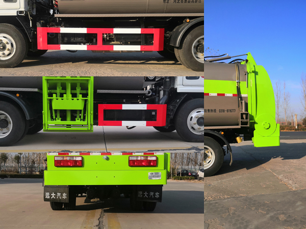 随底盘选装前面罩,前保险杠,前组合灯具.仅选用3308mm轴距.该车共2组配置:配置A(标准配置),B(选装螺旋卸料装置),各配置整备质量(kg)/额定载质量(kg)对应关系如下:配置A:4750/2480;配置B:5050/2180.侧防护材料材质:Q235A,连接方式:螺栓连接.后下部防护由专用装置代替,离地高度495mm,材料材质:Q235A.ABS型号/厂家:ABS/ASR-12V-4S/4M/襄阳东风隆诚机械有限责任公司.该车装有垃圾箱,提桶装置,推铲,液压系统等装置,用于餐厨垃圾收集,转运及卸料作业. |