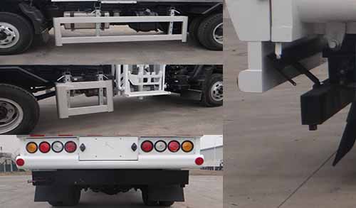 该车可选装清水箱、工作指示灯、爬梯、接水槽装置、工具箱及室外控制盒、清洗系统卷盘器、清洗系统侧置水箱及水泵.侧面防护装置所用材料材质:Q235B,连接方式为螺栓连接.后部防护装置所用材料材质:Q235B,连接方式为焊接连接,断面尺寸为178?0mm,离地高度为495mm.ABS控制器型号/生产企业:ABS-E/威伯科汽车控制系统(中国)有限公司,ABS-Ⅵ稥/广州瑞立科密汽车电子股份有限公司。选装右侧无观察窗型式。 |