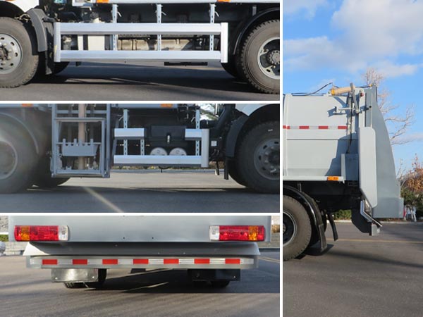 车辆装有侧装垃圾桶升降装载装置、密封式垃圾箱体、推卸机构、后卸料门等专用装置,主要用来收集和转运餐厨垃圾.仅选用3800mm轴距.随底盘选装宽体保险杠和脚踏板.选装前围和灯具.选装带卸料装置后门,对应整备质量7750kg,额定载质量4545kg.选装箭头式作业指示灯.选装导流挡板.选装称重系统.选装加热装置.ABS系统生产厂家:长春瑞立科密汽车电子有限公司,型号:CM4XL.车辆侧面防护装置的材料材质为铝合金,连接方式为螺栓连接.后下部防护装置的材料材质为Q235钢,连接方式为焊接,断面尺寸(mm)为80?60,最大离地高度为415mm. |