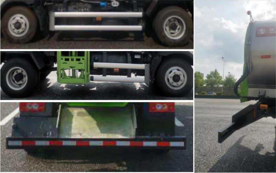 | 1,该车仅选用3360mm轴距;2.侧防护材料材质:铝合金,采用螺栓连接; 后防护材料材质:Q235.焊接连接,后防护截面尺寸:140?5毫米,离地高度380毫米.3,ABS型号为CM4XL-4S/4M,生产厂家为广州瑞立科密汽车电子股份有限公司.4,该车用于餐厨垃圾收集清运,主要专用装置为箱体、上料机构提升装置. |