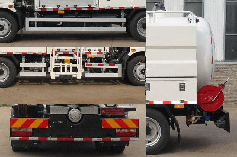 侧面防护装置材料:3A21,连接方式:横竖杆之间螺栓连接,和车架之间螺栓连接。后下部防护装置材料为:Q235-A,规格350X80槽形,连接方式:横杆和连接板之间焊接,和车架之间螺栓连接,离地高度430mm。ABS系统型号为ABS/ASR-24V-4S/4M,生产企业为襄阳东风隆诚机械有限责任公司。仅选装轴距为3800mm的底盘。专用装置为举升机构(举升垃圾桶,倾到餐厨垃圾)和垃圾箱(装放餐厨垃圾)。随底盘选装前面罩,前保险杠,前组合灯具,前雾灯,排半驾驶室,后视镜。 |