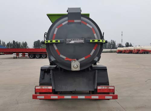 该车主要用于餐厨垃圾的收集和转运,主要专用装置为车厢总成、侧装垃圾桶提升装置;仅选用底盘3308mm轴距;该车可选装内部推板卸料装置,不影响整车外观,整车整备质量/额定载质量对应关系为:4800/2430(kg),4350/2880(kg).侧面防护装置材料为Q345B,与车辆采用螺栓连接,后防护装置材料为Q345B,与车辆采用焊接连接,截面尺寸为100?0(mm),离地高度为370mm.ABS型号/厂家:ABS/ASR-12V-4S/4M/襄阳东风隆诚机械有限责任公司.随底盘选装驾驶室,选装前面罩,前保险杠. |