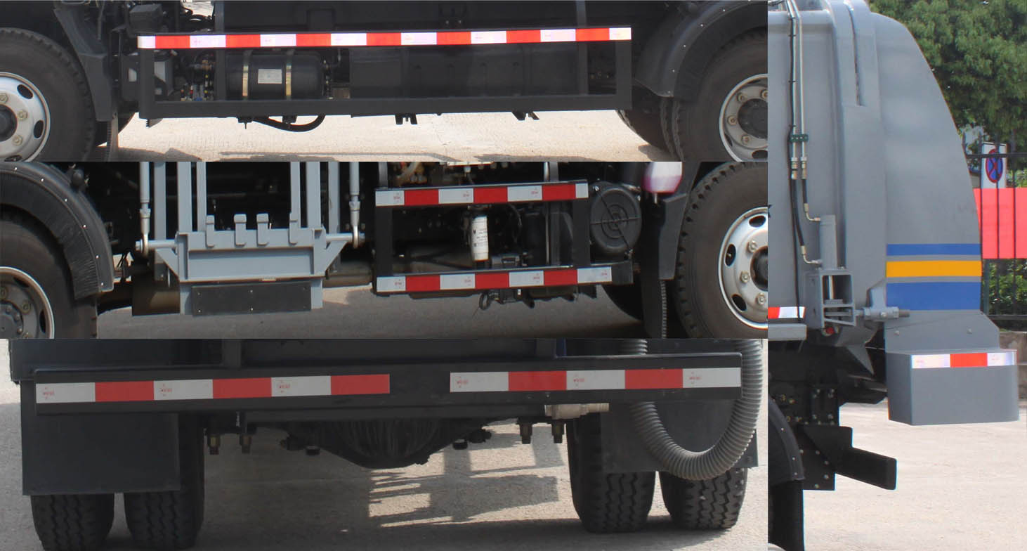 该车随底盘选装黑色轮辋,选装不安装清洗装置;侧后防护材质Q235,连接方式为螺栓连接;后防护截面尺寸为120?5mm,离地高度为470mm.车辆装有侧装垃圾桶升降装置、封闭式垃圾箱、推卸机构等装置,用于餐厨垃圾收集,转运及卸料作业.ABS系统型号:VIE ABS-II,ABS系统生产厂家:浙江万安科技股份有限公司. |