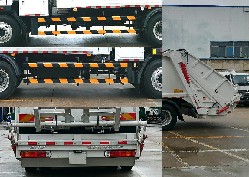 车辆通过垃圾箱,填装机构等装置,达到垃圾收集装填及推挤卸料的作业功能.该车配置ABC三种状态,配置A时:整车长度9500mm/9360mm,后悬3060mm,后伸370mm/230mm;配置B是:整车长9250mm,后悬2830mm,后伸350mm;车辆配置C时:整车长8900mm;侧防护装材料均为Q235A,侧防护栏材料选装6061,连接方式为螺栓连接,后防护装置由专用装置代替;离地高度为415mm/380mm;动力蓄电池种类:磷酸铁锂电池,生产企业:宁德时代新能源科技股份有限公司,电机型号:FTTB080C;生产企业北汽福田汽车股份有限公司,额定功率:80kw;峰值功率:160kW;ABS型号/生产企业:ABS-E/威伯科汽车控制系统(中国)有限公司;安装具有卫星定位功能的行驶记录仪;选装箱体造型,可选装采用直接供电方式的ETC车载装置.选装电池罩造型. |