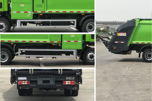 1.储能装置种类/生产企业:磷酸铁锂蓄电池/宁德时代新能源科技股份有限公司。2.可在全国销售。3.侧防护装置材料为Q355,与车辆采用螺栓连接;后防护装置由专用装置代替,专用装置离地高度为480mm。4.该车有两种配置,分别为挂桶式上料机构(基本型A)、簸箕式上料机构(B);配置/整车长度(mm)/后悬(mm)/后伸(mm)对应关系分别为:A/7870/2345/350;B/7660/2330/155。5.选装360环视位置,可随底盘选装驾驶室,可取消填装器护罩,可选装不同型式箱体、后门及填装器护罩,选装不同型式箱体时对应的整车宽度为2050mm,可选装不同型式轮罩。6.该车360环视为选装件。7.ABS型号/生产企业:BTL 24V ABS/芜湖伯特利电子控制系统有限公司。8.该车装有箱体、填装器、后上料装置,用于垃圾自行压实装入、转运和卸料。 |