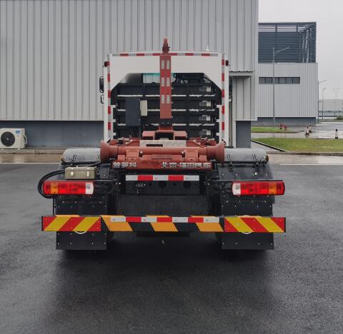 1.该车专用装置为液压钩臂,用于城乡生活垃圾运输.2.侧防护装置材料均为铝合金6061,连接方式为螺栓连接,后防护装置材料为Q235A,后防护的断面尺寸:150?0mm;离地高度为450mm;3.动力蓄电池种类:磷酸铁锂电池,生产企业:宁德时代新能源科技股份有限公司,电机型号:FTTB080C;生产企业北汽福田汽车股份有限公司,额定功率:80kw;峰值功率:160kW;4.ABS型号/生产企业:ABS-E/威伯科汽车控制系统(中国)有限公司;安装具有卫星定位功能的行驶记录仪;5.选装不带360可视系统,选装上装动力单元取力,选装钩臂外观,选装可选装采用直接供电方式的ETC车载装置.整备质量不包括垃圾箱,选装外观 |