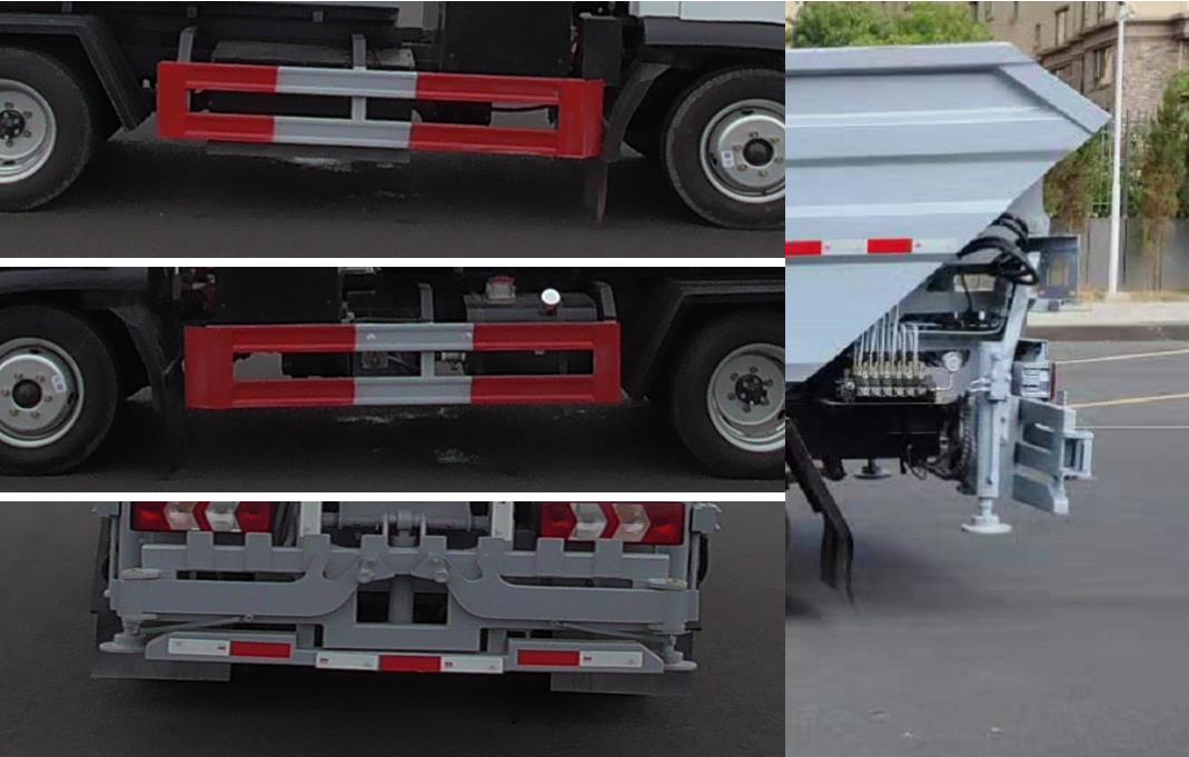 1、储能装置种类/生产企业/型号:磷酸铁锂蓄电池/宁德时代新能源科技股份有限公司/L173TB1。2、ABS型号/生产企业:RL-3550/瑞立集团瑞安汽车零部件有限公司。3、驱动电机类型/生产企业/型号:永磁同步电机/广西玉柴机器股份有限公司/TZ220XSK07,额定功率为45kW,峰值功率为100kW,电机控制器生产企业/型号:广西玉柴机器股份有限公司/KTZ39X35S01,整车控制器生产企业/型号:广西玉柴新能源汽车有限公司/YCNEV-VCU003。4、随底盘选装无补盲镜、门把手样式、储能装置外罩样式,选装无备胎,选装不同规格轮胎,可选装上装结构样式。5、可选装直接供电的ETC车载装置。6、侧防护装置的材料材质:Q235,连接方式为螺栓连接;后部防护由专用装置代替,离地高350mm。7、该车主要用于垃圾清运,专用装置为垃圾箱和提升机,主要用于城镇环卫垃圾的运输,卸料方式为后卸。8、车厢材质为Q235B,底板厚3mm,侧板厚3mm,货厢重720kg。9、该车型整备质量不包括备胎、灭火器、随车工具等。 |